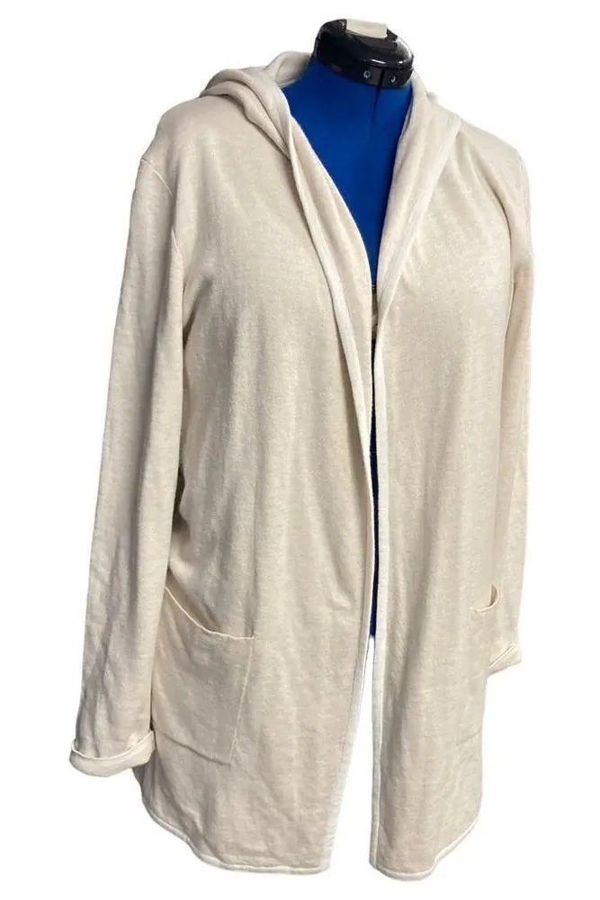 BRAND: Tahari SIZE: XL COLOR: Ivory/Cream MATERIAL: 60% Cotton, 40% Polyester MEASUREMENTS: See Pictures CONDITION: Good OTHER DETAILS: Long sleeves Hooded Please see approximate measurements in pictures before purchasing. Use your own judgment as to the fit.