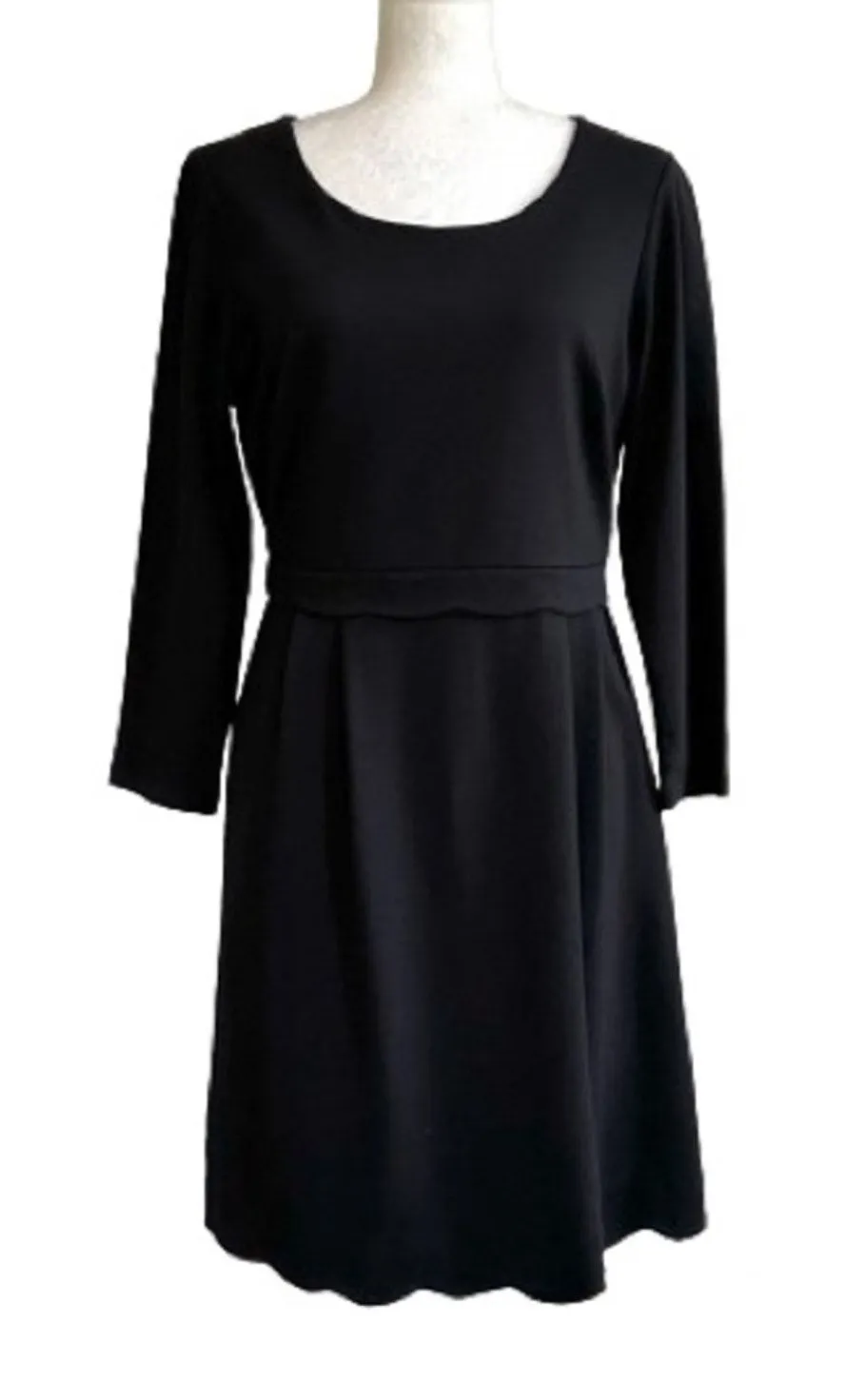 Tahari Black Jersey 3/4 Sleeve Scalloped Waist Hem Sheath Career Casual LBD Dress Size 8 EUC... Show more