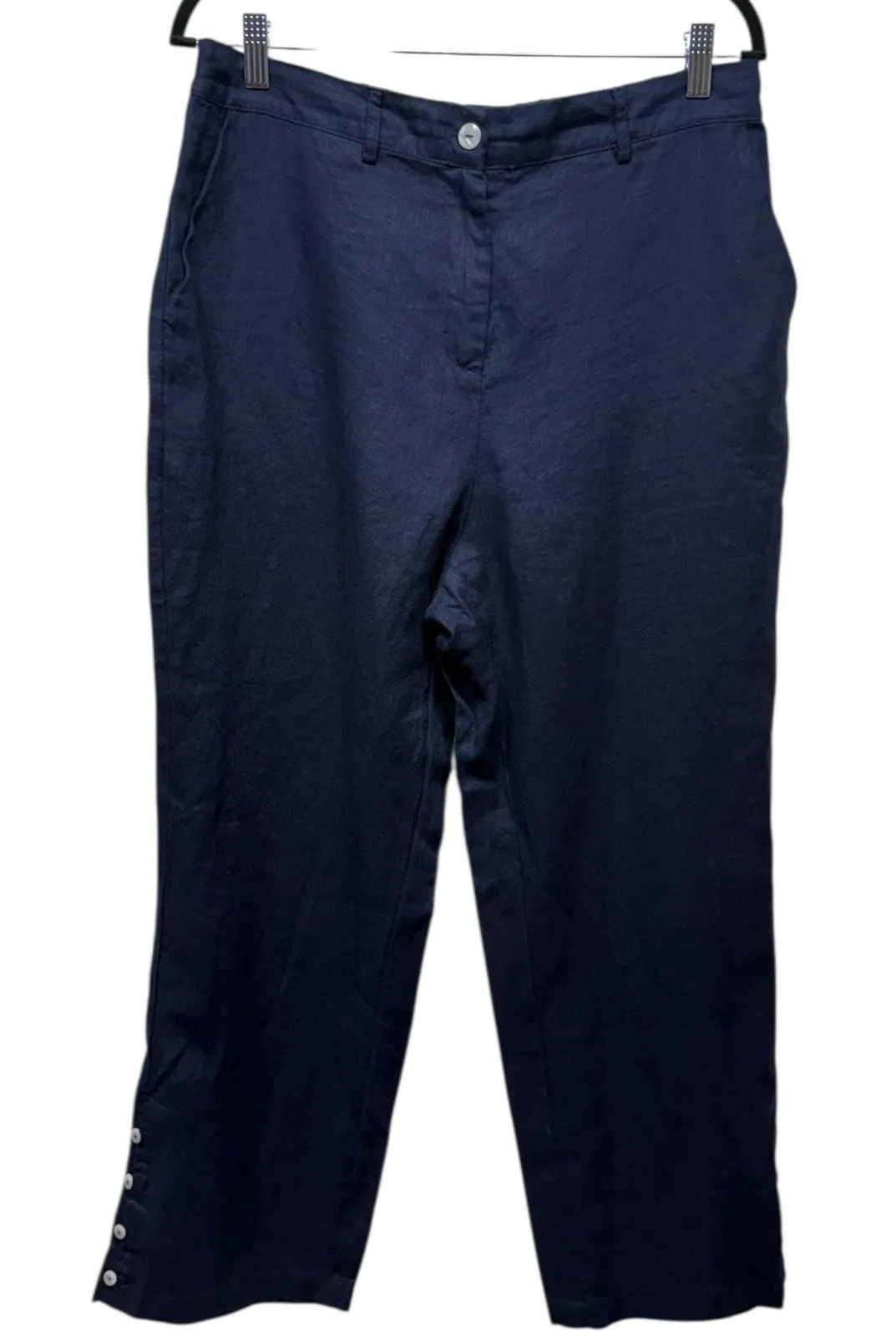 Tahari Pants Wide Leg 100% Linen Women Sz L Blue Coastal Lagenlook Elastic Waist Size L - $34 New With Tags - From McKinley