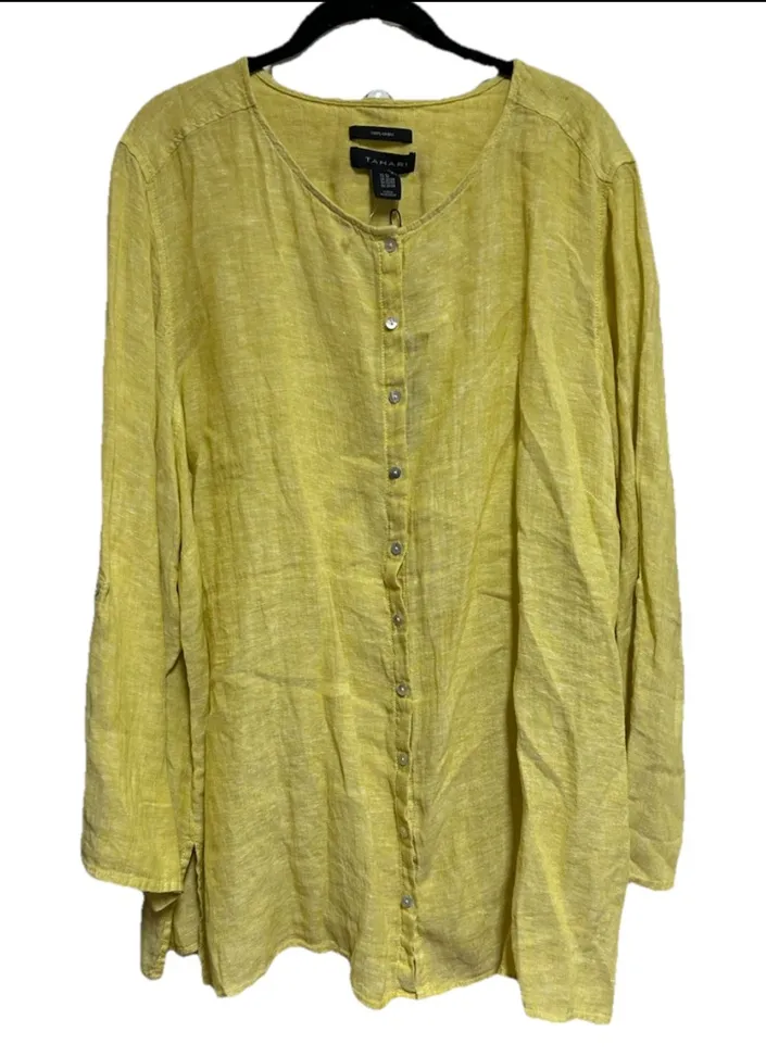 Tahari Tunic Top Blouse Plus Size 3X Yellow Linen Roll Tab Sleeves Lagenlook NWT - $36 New With Tags - From Tina