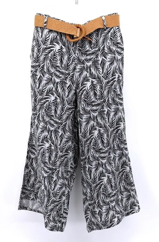 Same day shipping on orders purchased before 3 p.m. EST Mon-Fri. Reasonable offers welcome! All measurements are taken lying flat. Please compare measurements to something you already own. Digital model photo may be used for styling purposes only. Small details may vary from the actual item, refer to additional photos for details. Actual colors may vary slightly from what appears on your screen All items shipped from a smoke-free home. Keywords: Tahari Pants, Women's Linen, NWT, Palm Leaf Print, Wide Leg, Cropped Pants, Resort Wear, Vacation, Beach, Summer Fashion, Breathable, Comfortable, Belted Pants, Luxe Linen