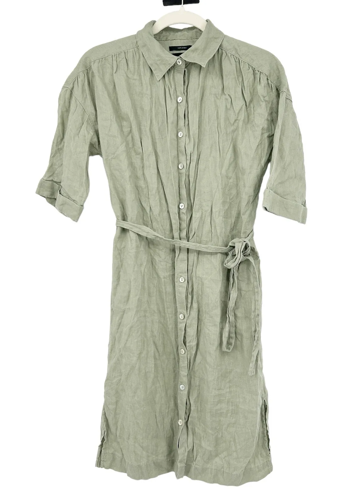 TAHARI Womens 100% Linen Beachy Button Front Belted Shirt Dress in Sage Green. Size Small Good preo... Show more