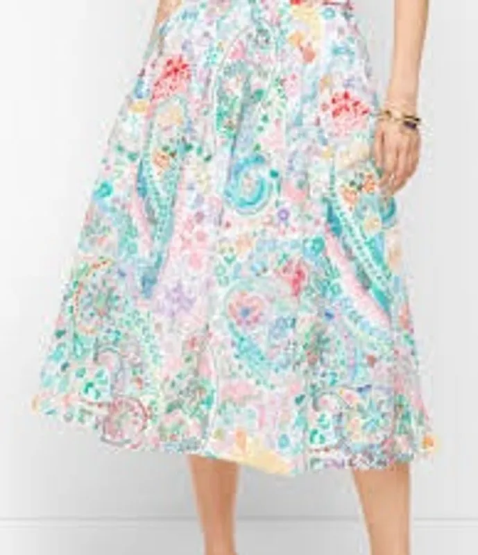 Our pleated midi skirt. Pretty in paisley. With pockets where you want them. Give it a twirl. Featur... Show more