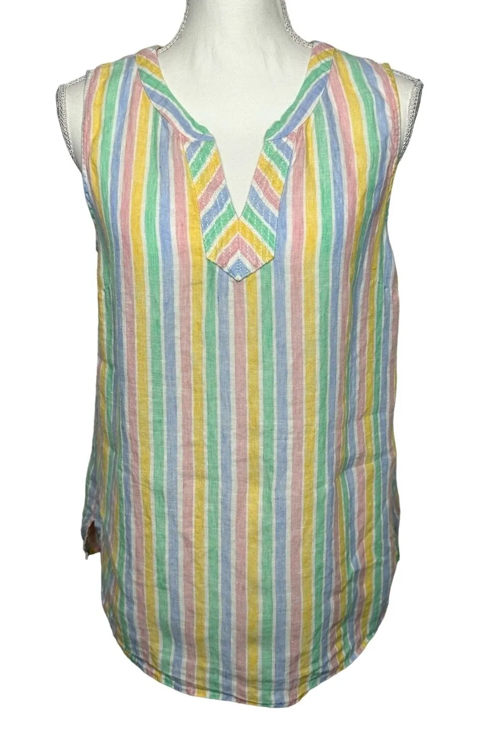 Talbots Pastel Striped Sleeveless Top Size Medium -100% Linen -Machine Wash Approximate Measuremen... Show more