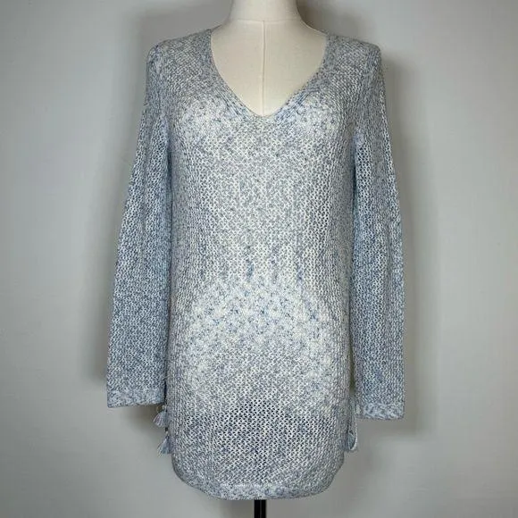 Talbots 100% Pima Cotton Sweater Women’s Size XS. Light blue and white loose knit, side split hem wi... Show more