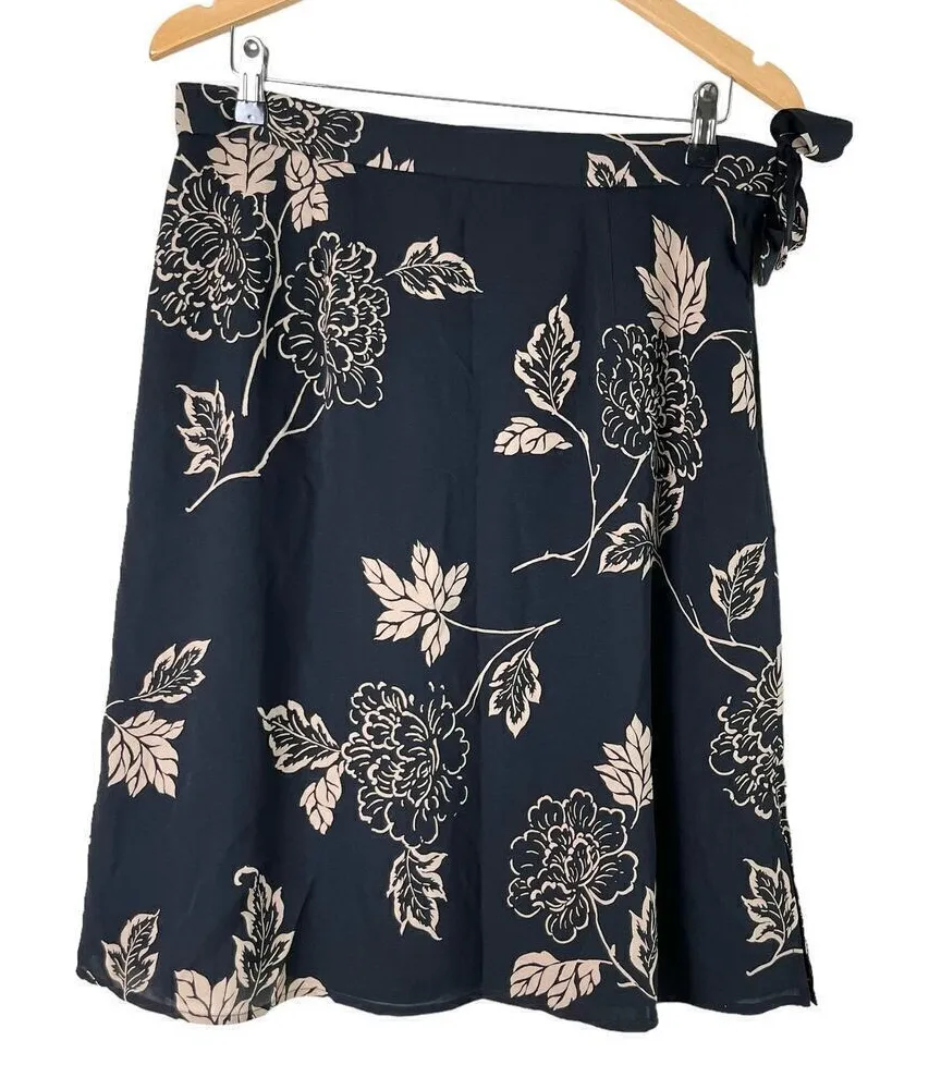 Talbots 100% Silk Floral Print Skirt Side Zip and Tie Black Cream, Size 14 Petite Features: zipper... Show more