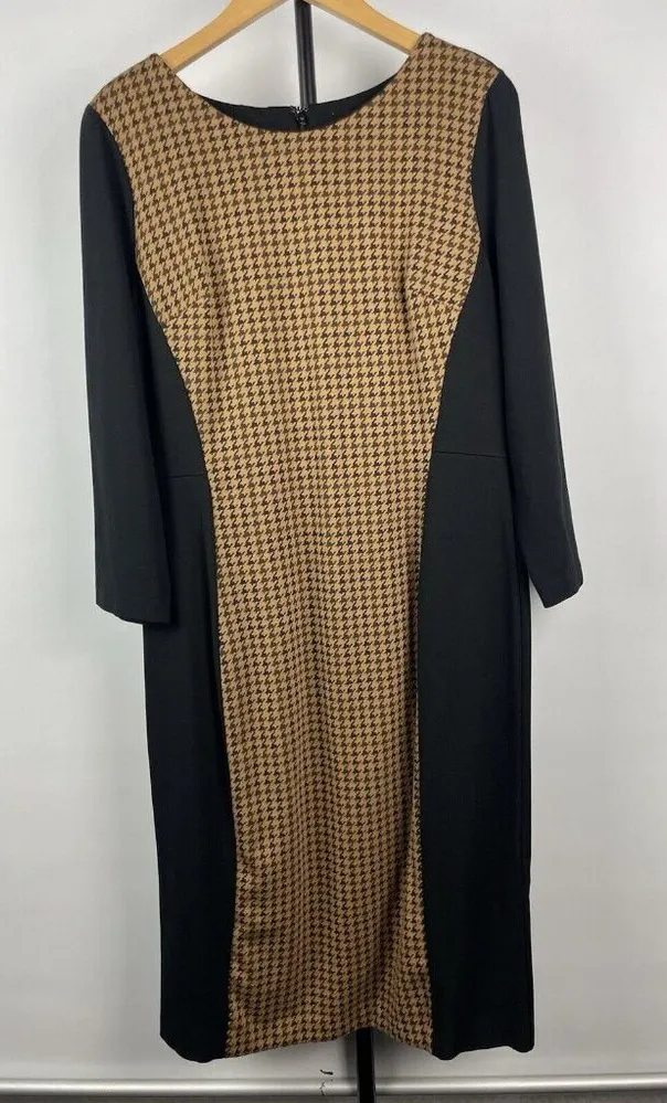 Talbots Black Brown Gingham 3/4 Sleeve Sweater Knee Length Holiday Dress Size 6 Excellent used cond... Show more