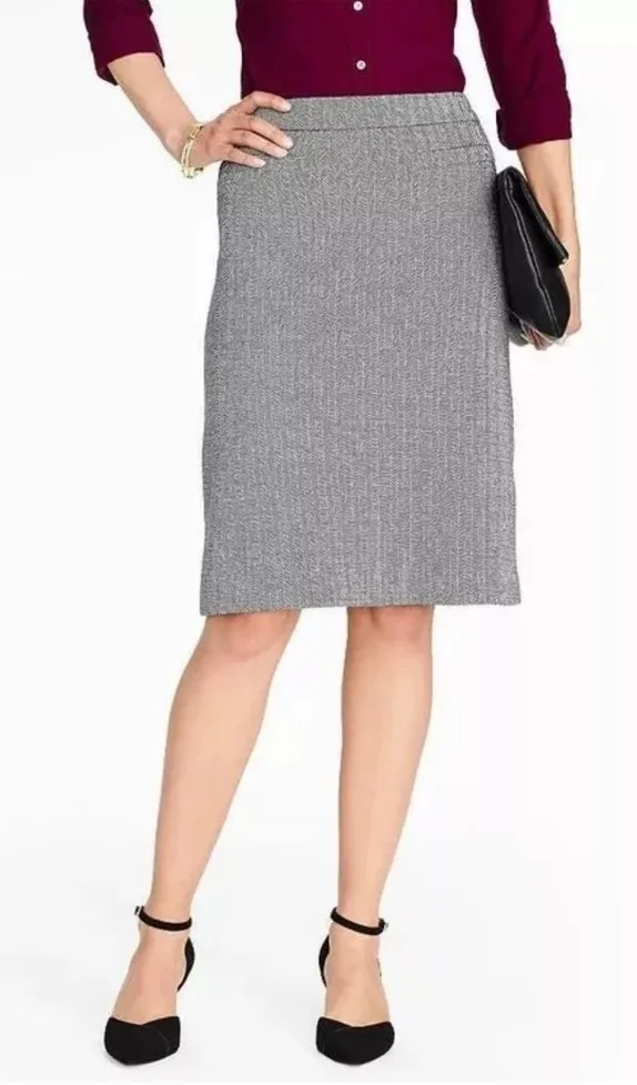 Talbots Black White Herringbone Knit Knee Straight Length Skirt Women's Size 6P. In excellent used... Show more