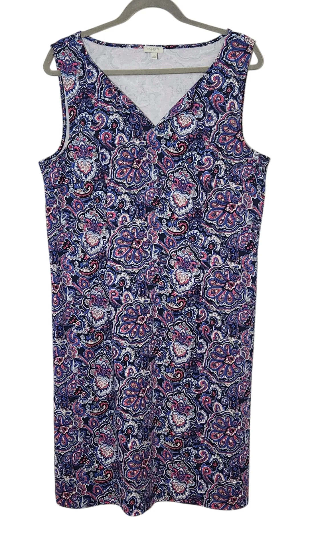 Talbots sleeveless dress with a slit neckline and some stretch to the fabric. Falls about at the kne... Show more