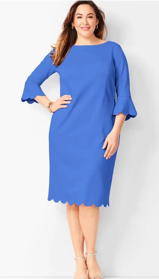 A timeless, polished Talbots ponte sheath dress in a vibrant cobalt blue, designed with elegant scal... Show more