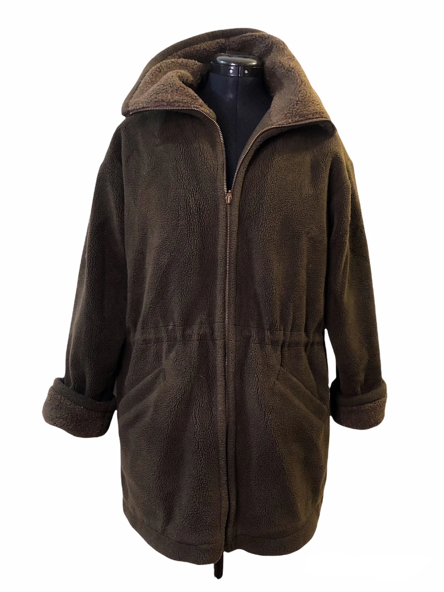 Brown Teddy Coat Label: Talbots Size: S Sleeve length: 20” Length: 32.5” Front Pit to Pit: 24” Cuffe... Show more