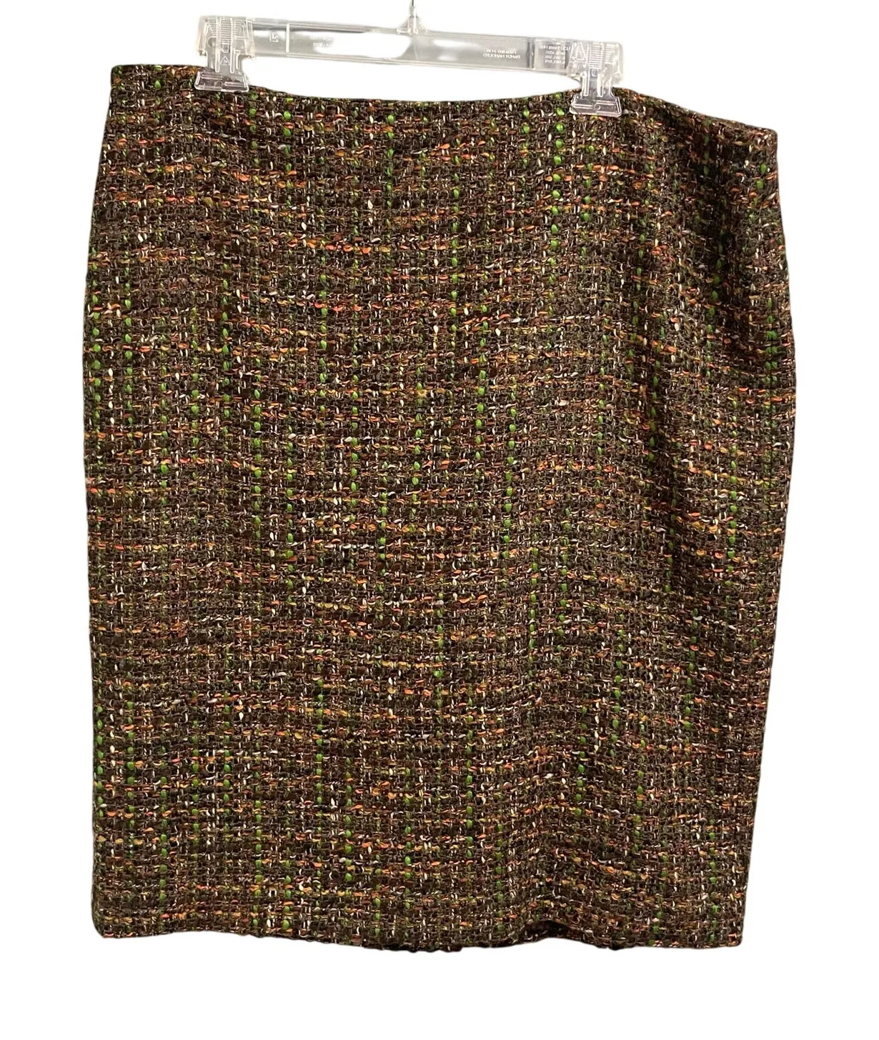 Excellent condition womens size 16 brown with multicolor green and orange woven fabric straight penc... Show more