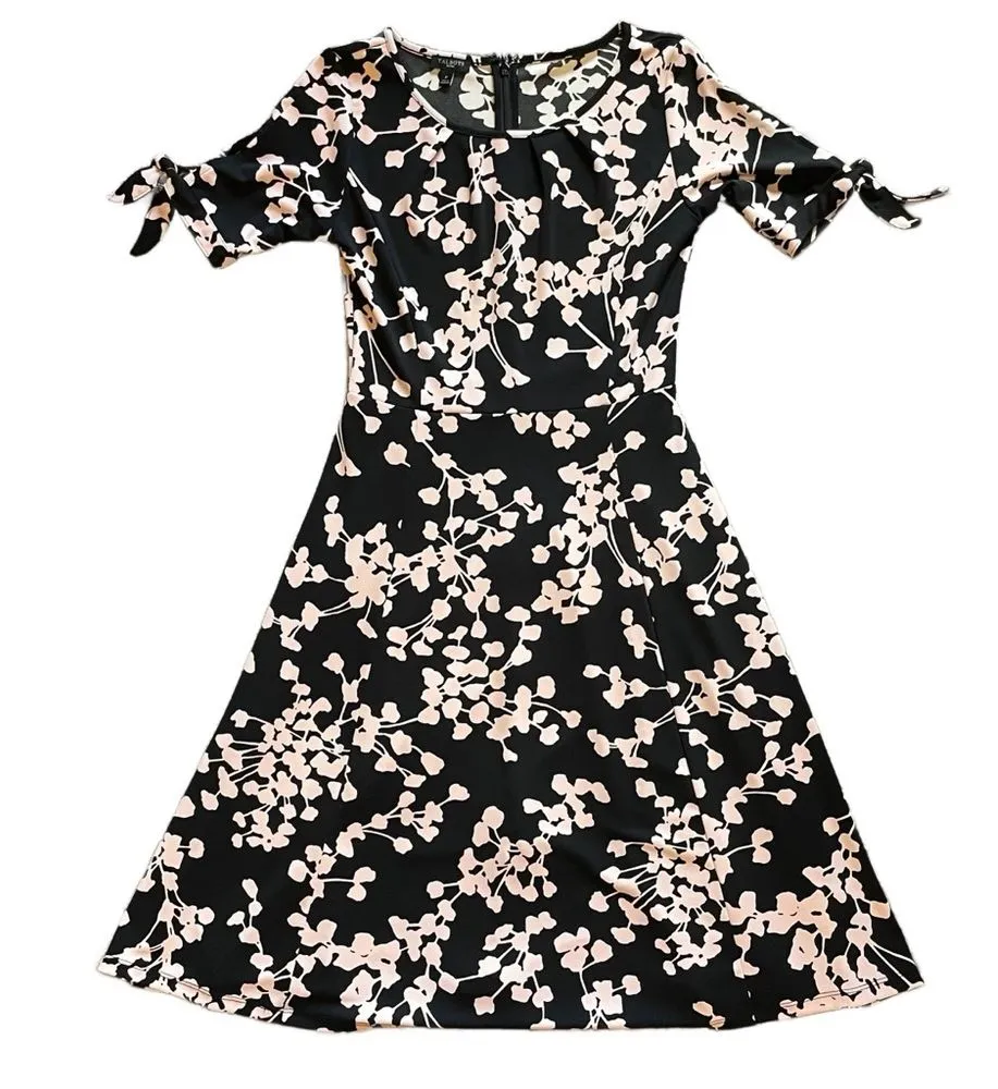 Talbots Cherry Blossom Sakura Floral Printed Modest Crewneck Short Sleeve A-Line Circle Skirt Midi D... Show more