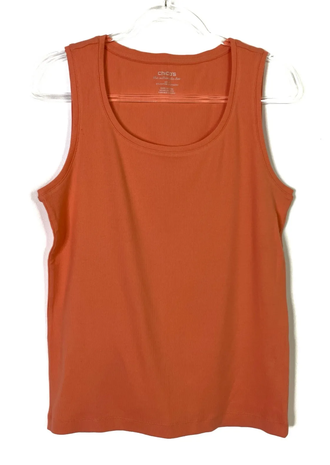 Chico's The Ultimate Tee Scoop neck tank top Orange Ribbed knit Chico's size 2- equivalent to US La... Show more