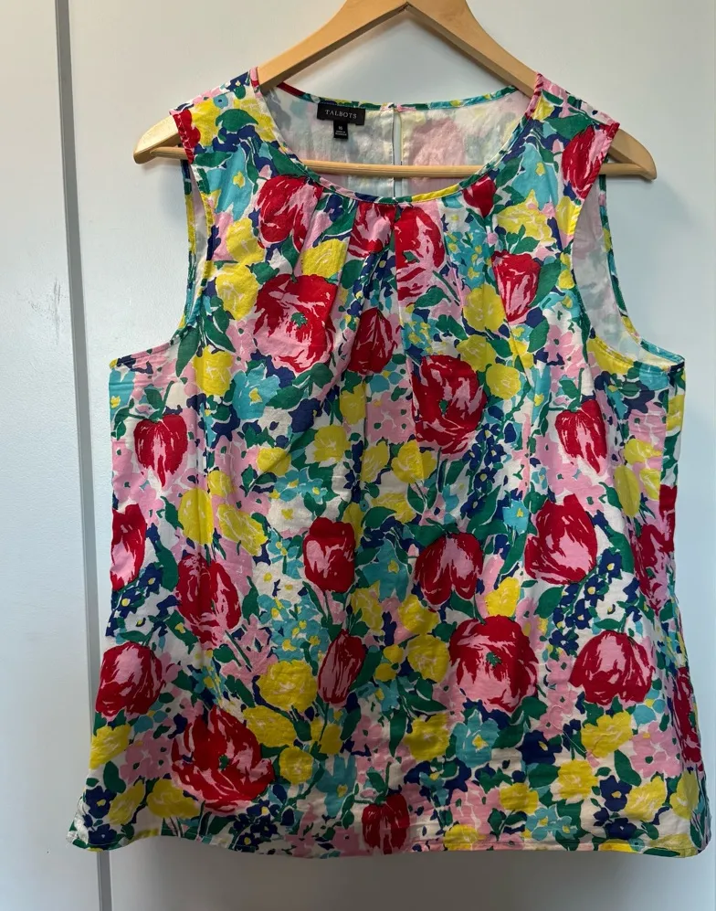 Talbots Colorful Floral Bright Pleated Tank Top Blouse Crewneck Flowy Lined 16 Excellent Condition... Show more