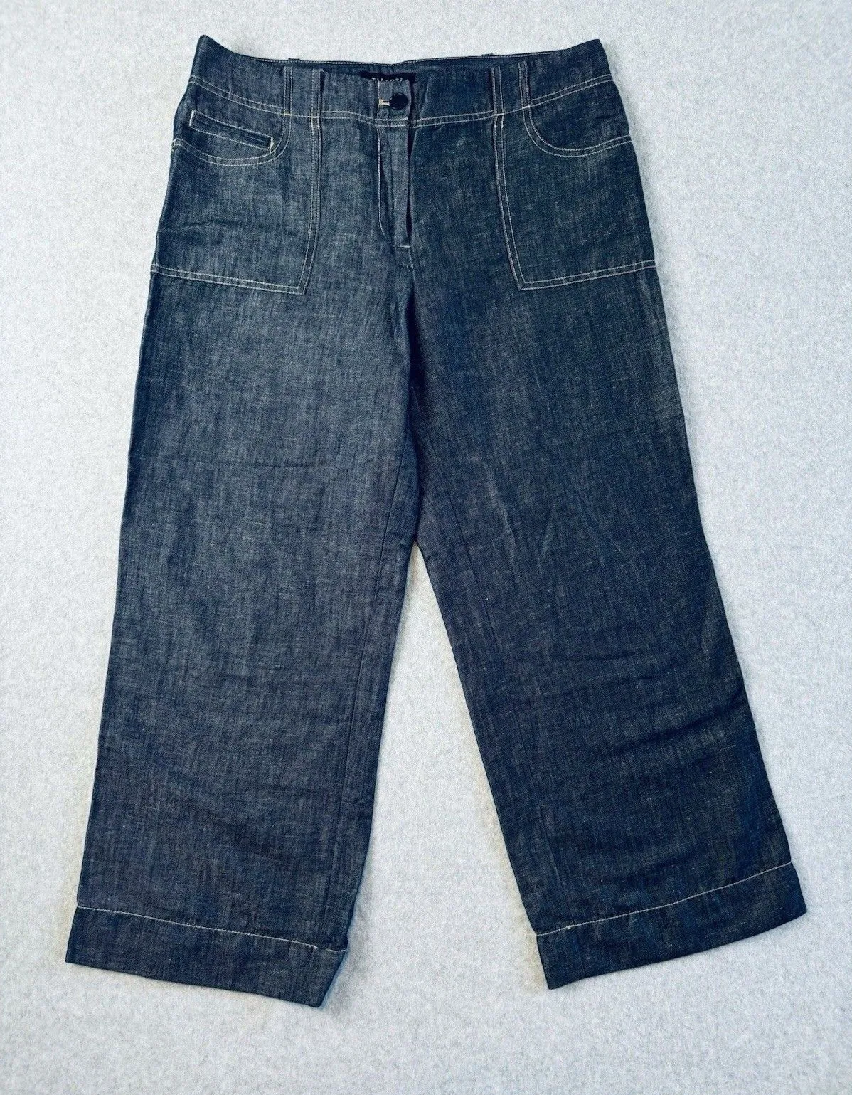 Talbots Dark Wash Lightweight Linen Blend Denim Look Trousers Pants 10 Wide Leg Size 10 Signature... Show more