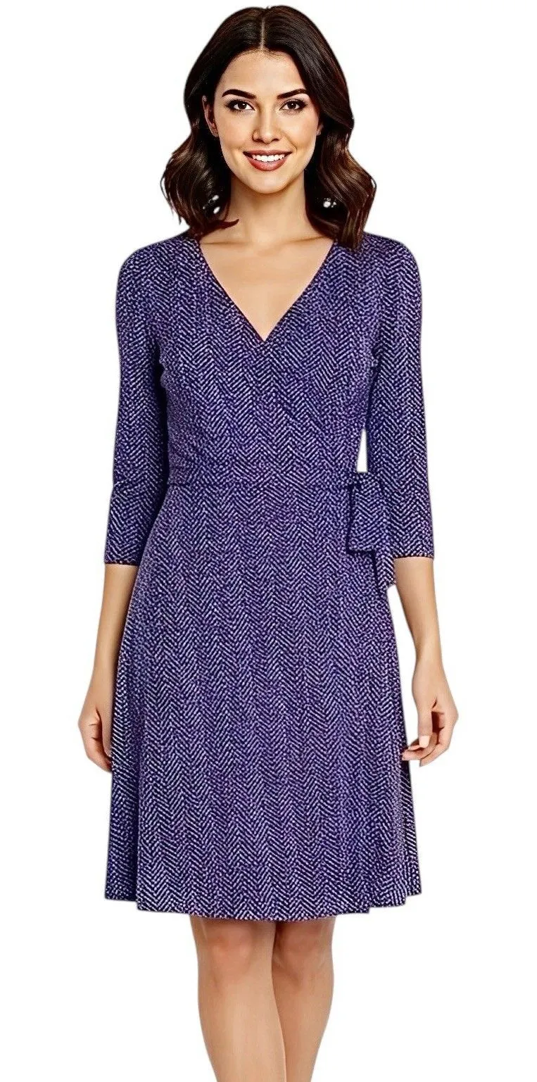 TALBOTS Dress Womens Size Small Petite Faux Wrap Purple Tie Belt 3/4 Sleeve Pastel, Summer, Date night Outfit, Weekend, Colorful Feminine, Romantic, Family Modern, Trendy Outing, Y2k , Minimalist, Casual, Everyday wear,