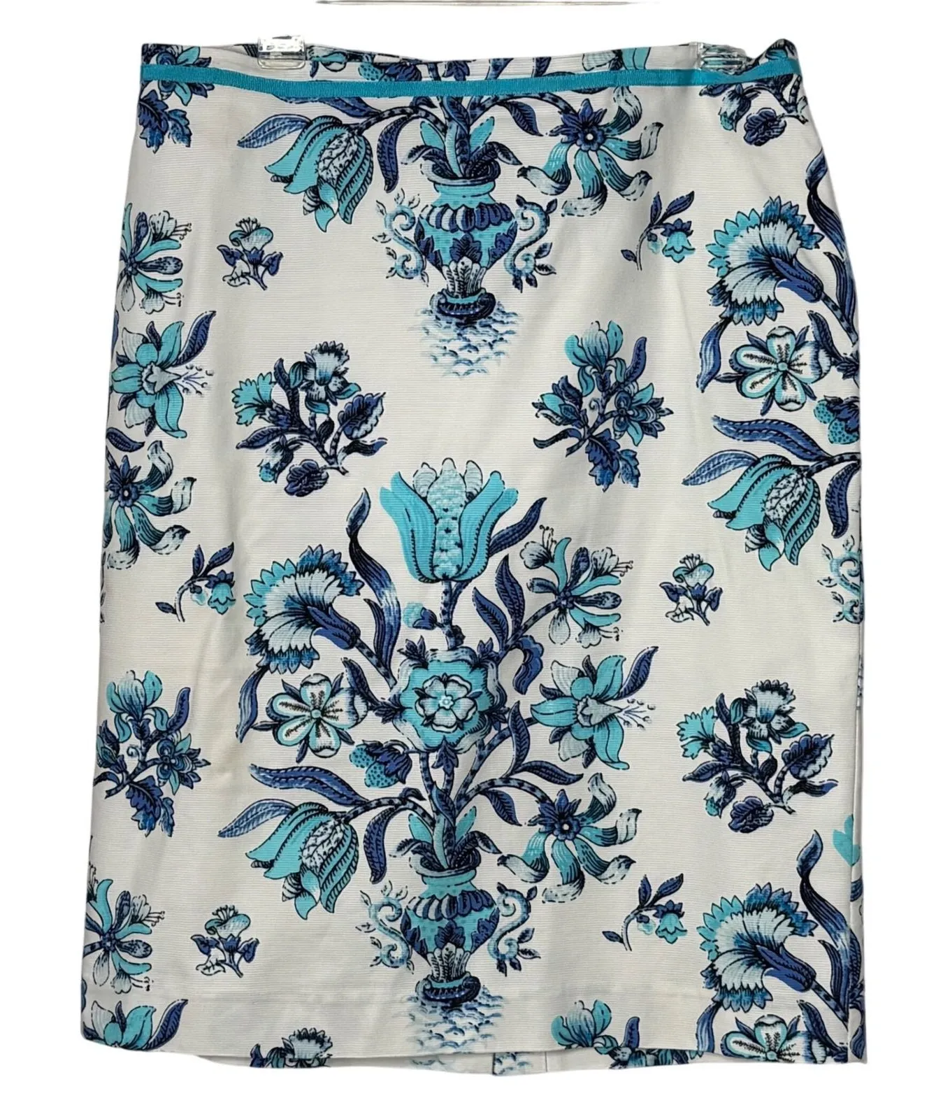 Talbots Floral Print Preppy Skirt Women Size 12 Blue White Straight Baroque Pre Owned, In Great S... Show more