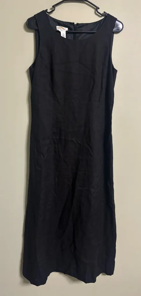 Talbots Irish Linen V-Neck Sleeveless Career Maxi Dress Size 6 Small Back Zip Black - $35 - From Ashlee
