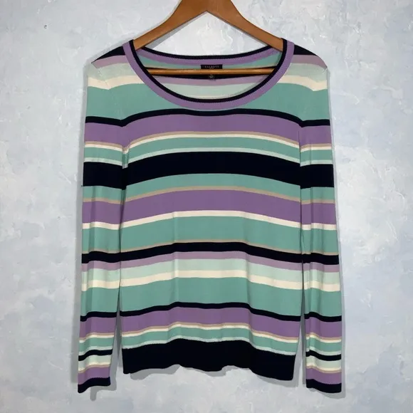 Excellent Condition Talbots Lavender, Mint, Black & White Striped Round Neck Lightweight Long Sleeve... Show more