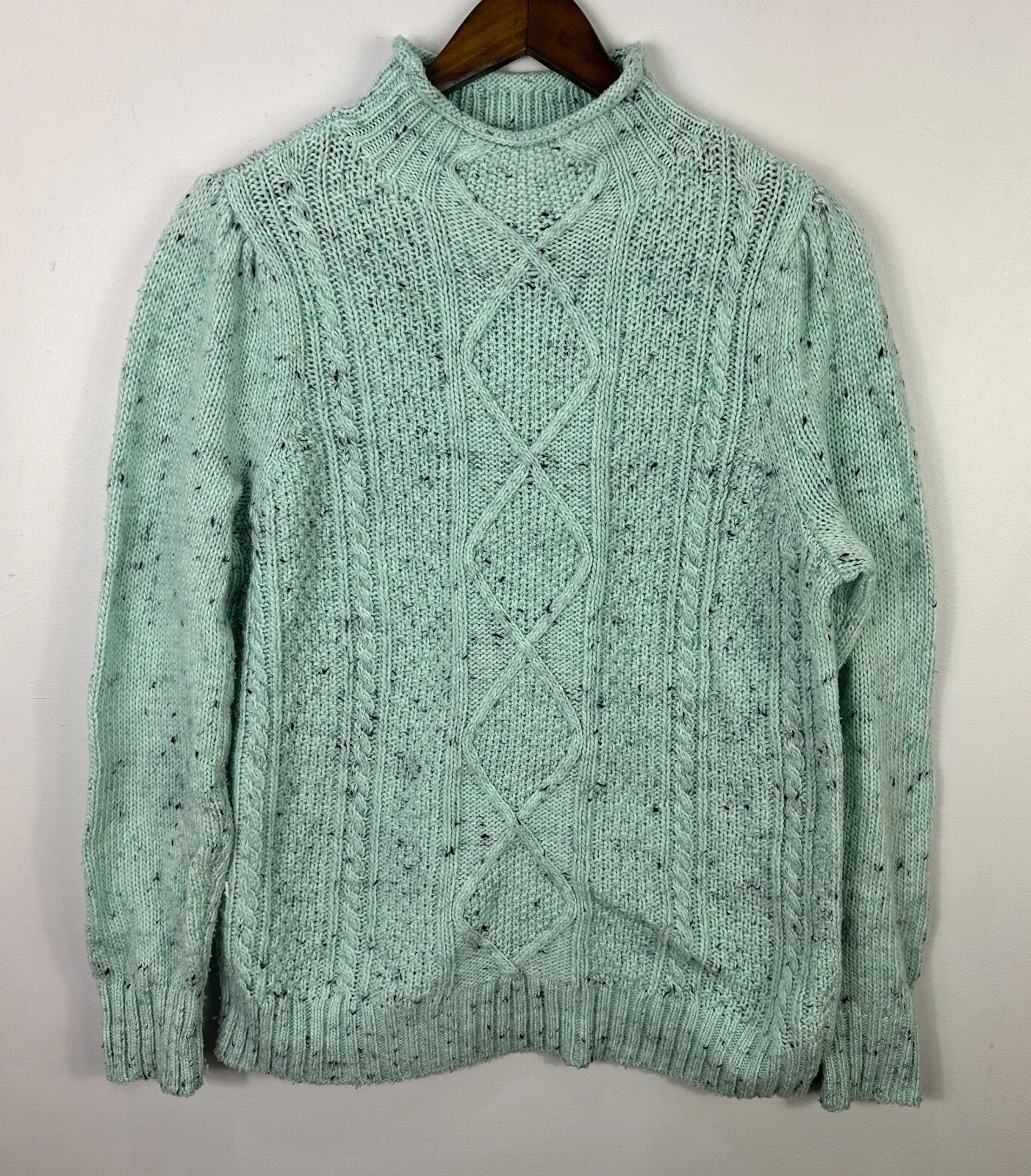 Talbots Mint Cable Knit Sweater L Fisherman Old Money Coastal Grandma Preppy Talbots women's mint g... Show more