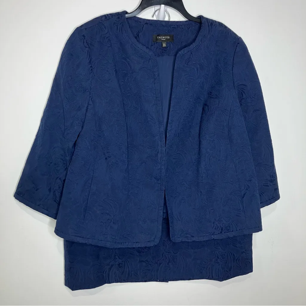 Talbots navy blue jacquard blazer & skirt set women’s size 18W professional Very good preowned con... Show more