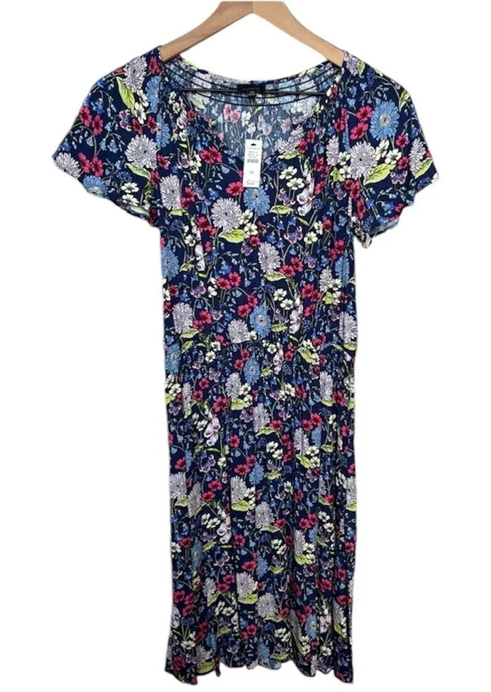 Talbots NWT Floral Short Sleeve Midi Dress Navy Blue Pink White Flowers and Butterflies Lightwei... Show more