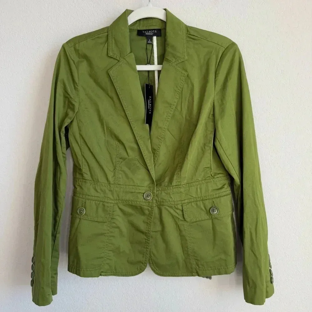 Elevate your wardrobe with this stunning Talbots blazer jacket in a beautiful olive green color. Thi... Show more