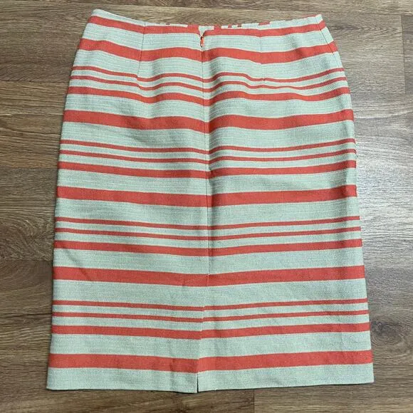 Talbots Orange Tan Striped Pencil Skirt Womens Size 4 Small Linen Blend Career - $21 - From Heather