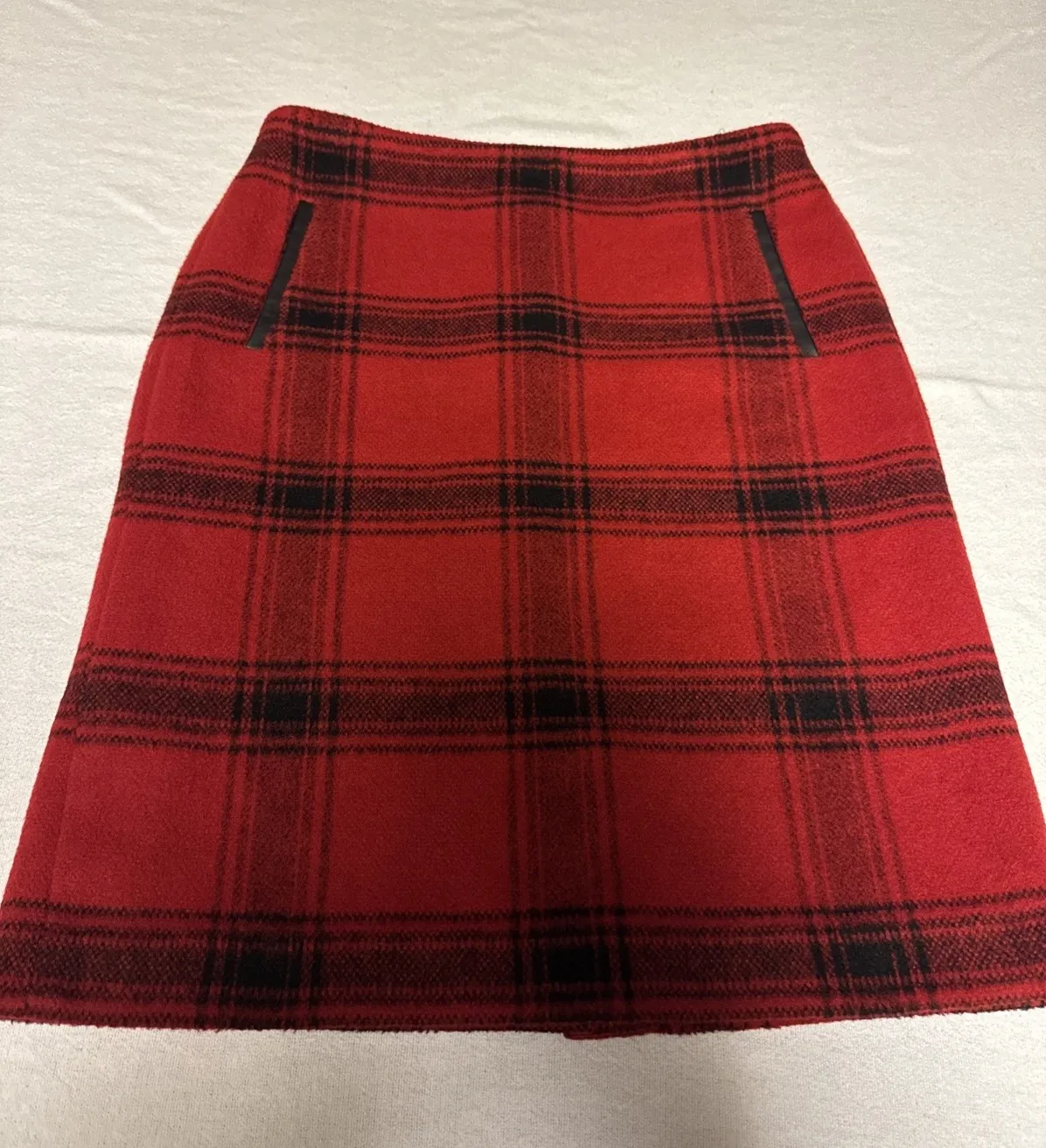 This Talbots pencil skirt in a red and black plaid buffalo check pattern is a stylish addition to an... Show more