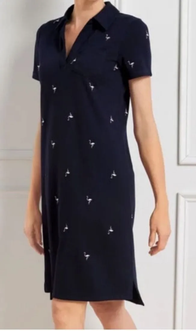 Charming flamingo embroidery graces this navy polo shirt dress, creating a playful yet polished look... Show more