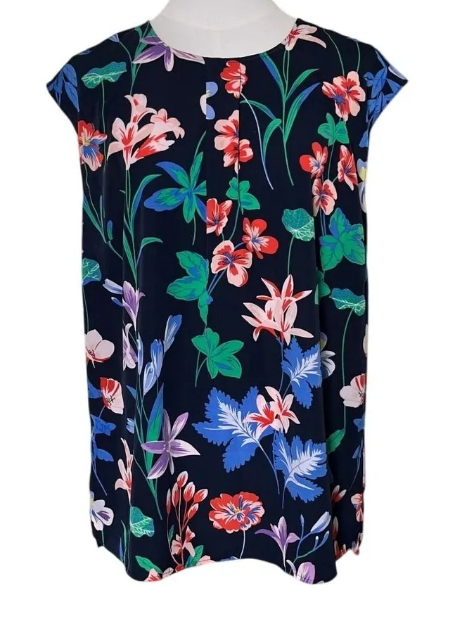 Stylecore Vibes: A vibrant Talbots Petites 16P sleeveless floral blouse in navy with pops of red, gr... Show more