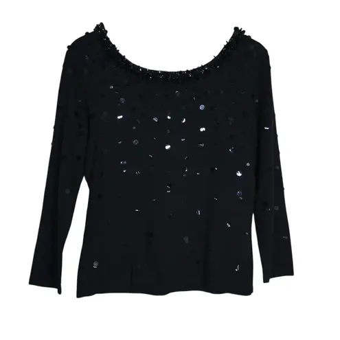 Very good preowned condition. Size Small Petite. COLOR: Black This Talbots Black Sequin & Paillette... Show more