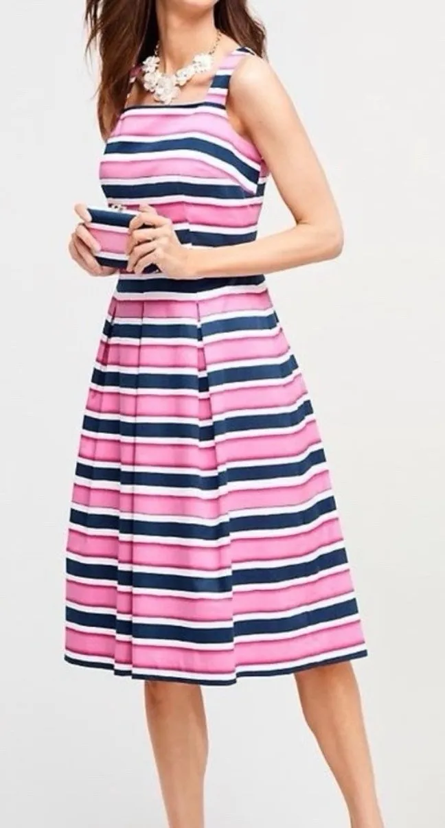 Perfectly preppy pink, white and navy blue striped Pair with a lightweight cardi for a sophisticated... Show more