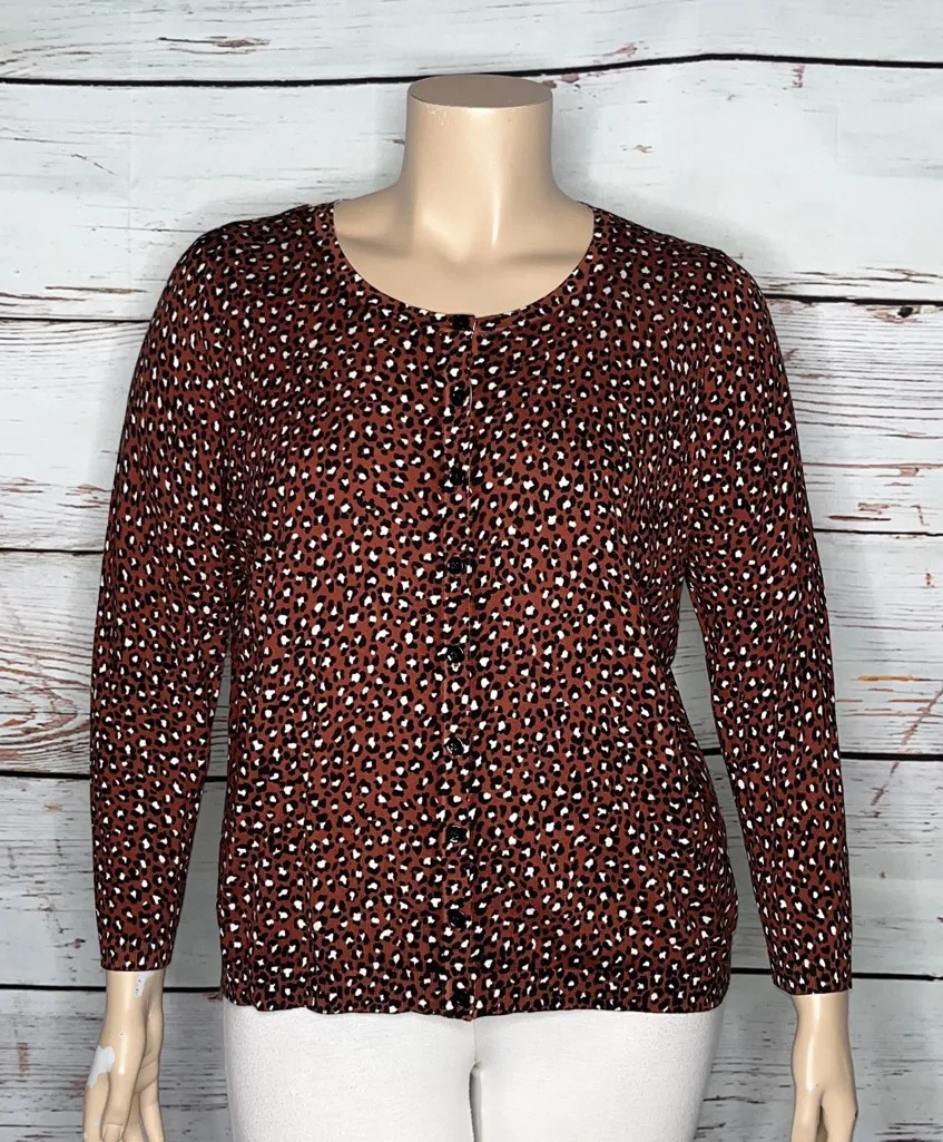 Talbots Plus Petite Size 2Xp Brown - Black & White Animal Print Sweater Cardigan. Button Closures. L... Show more