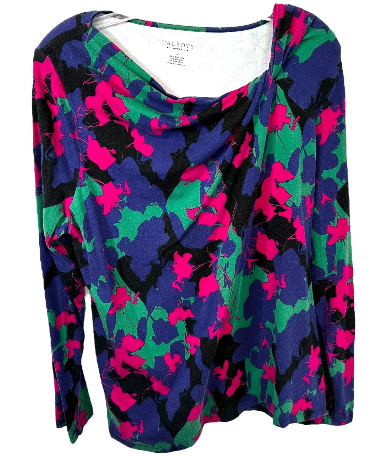 A vibrant floral print long sleeve top by Talbots. This top features a comfortable cowl neckline and... Show more