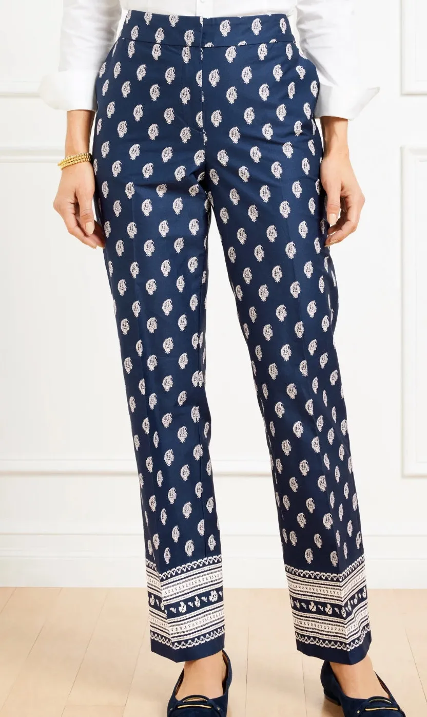 Bring a touch of serene paisley to your wardrobe in these pretty straight leg pants. Crafted from co... Show more