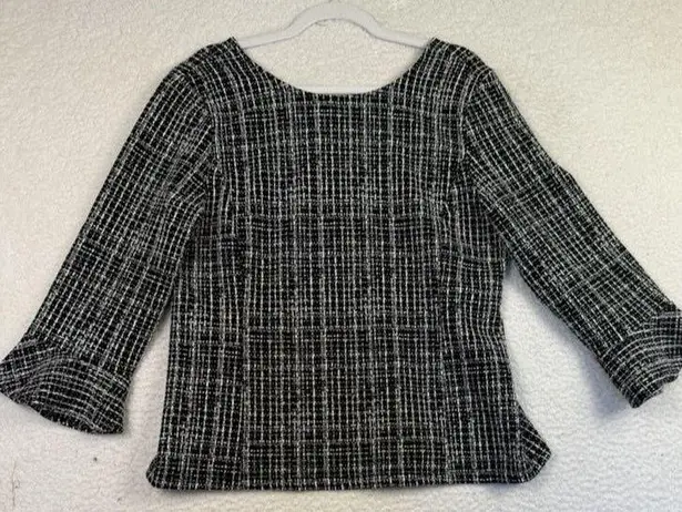 Talbots Sweater Womens Large Black White Plaid Bell Sleeve Stretch Pullover Top Condition: Gently wo... Show more