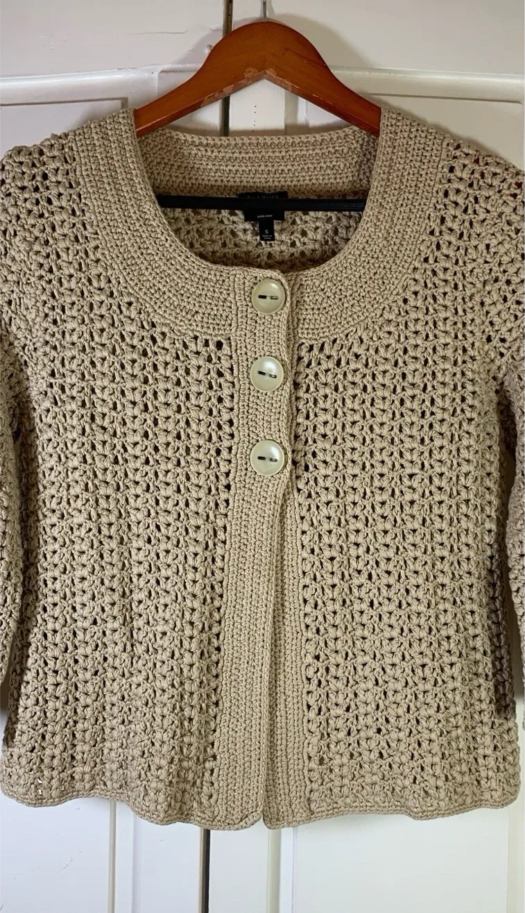 Talbots Sweater Womens Petites Small Neutral Hand Knit Cardigan Button Preppy Mercerized cotton