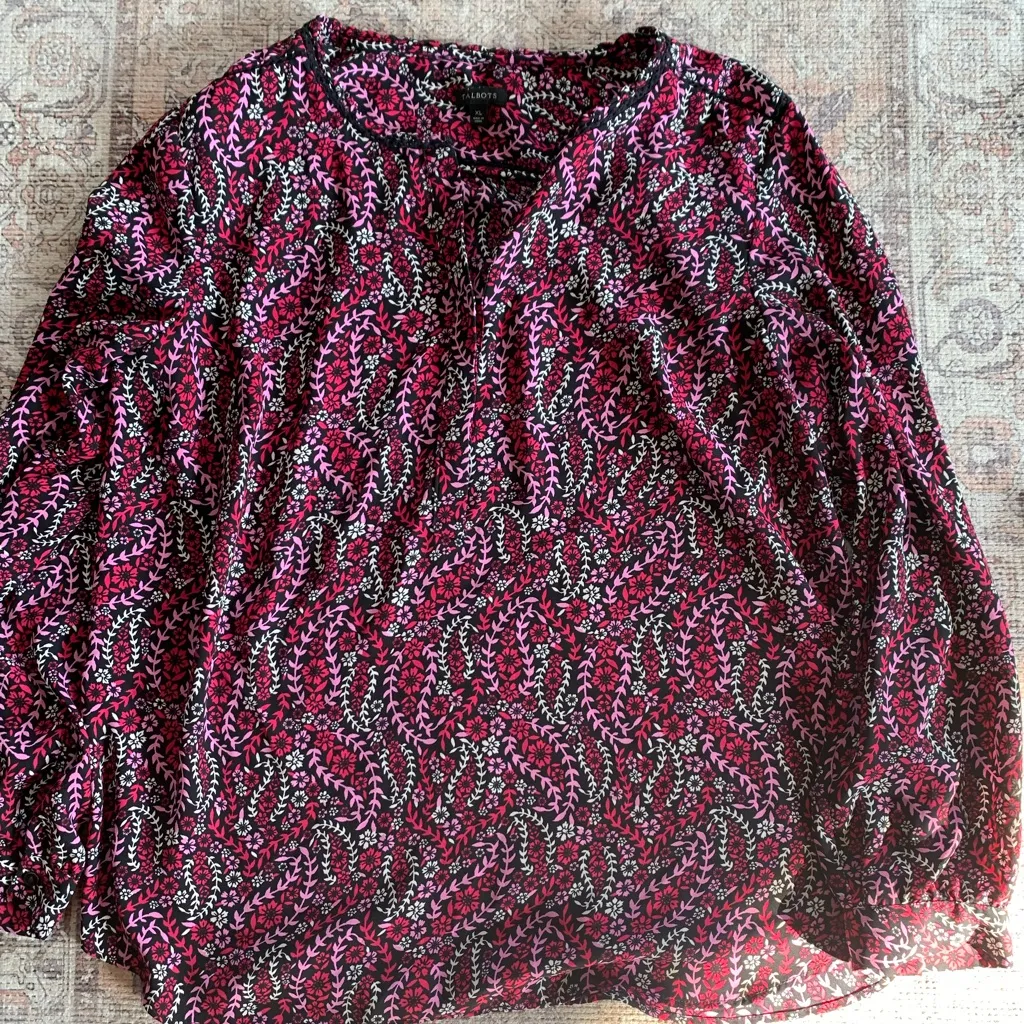 Talbots Top Blouse Long Sleeve Womens XL Multicolored Black Business Casual Pink - $20 - From Alisha