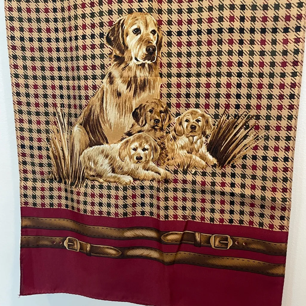 The sweetest silk scarf you will ever find. Adorable dog design. Rich burgundy and beige tones. The... Show more