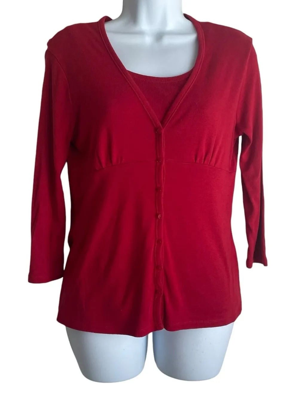 Talbots Women Cardigan Tank Set S Petite Red Pima Cotton Blend Office Classic Well cared for condit... Show more