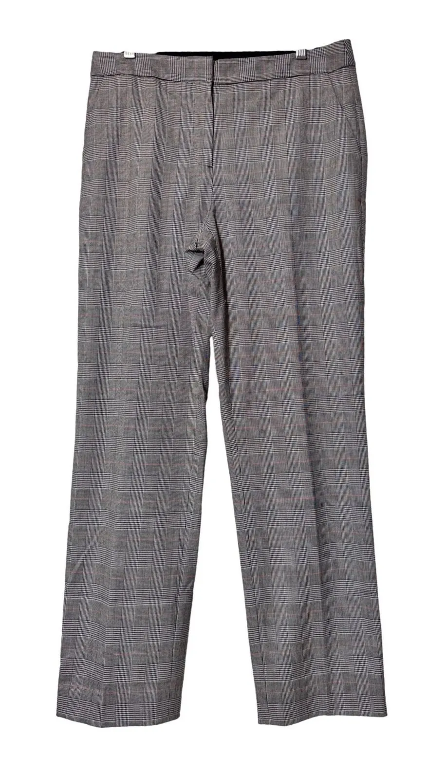 Keywords: Talbots pants, plaid trousers, career wear, office attire, straight leg, business casual, professional, tailored pants, women's workwear, classic style, smart casual, gray plaid, houndstooth detail