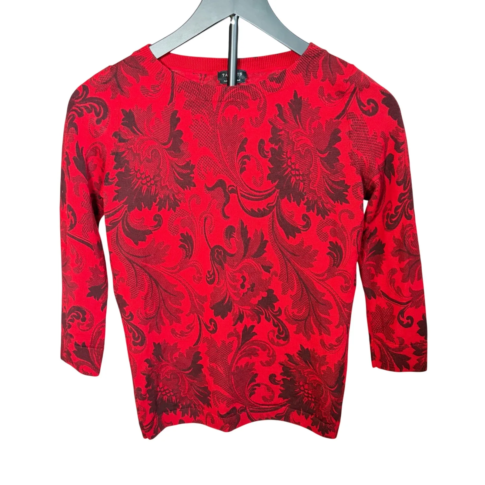 Talbots womens red sweater black floral pattern. 3/4 sleeve crew neck. Size XS workwear, holiday, p... Show more