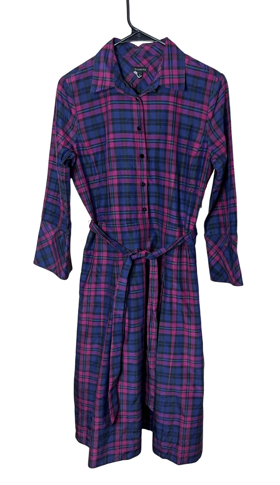 Talbots women's plaid shirt dress in blue and pink. This dress features a classic collar, button-dow... Show more