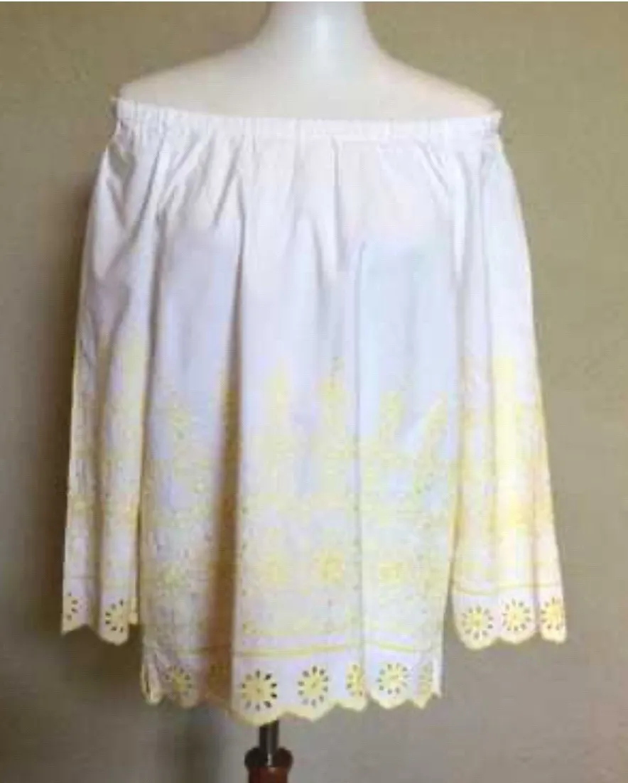 The Talbots Yellow & White Eyelet Embroidered Blouse Top in size L is a stylish and versatile piece... Show more