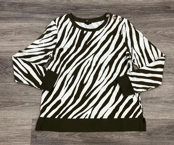 Stylish zebra print sweater. Features cowl neck and button details. Perfect for layering. Excellent... Show more