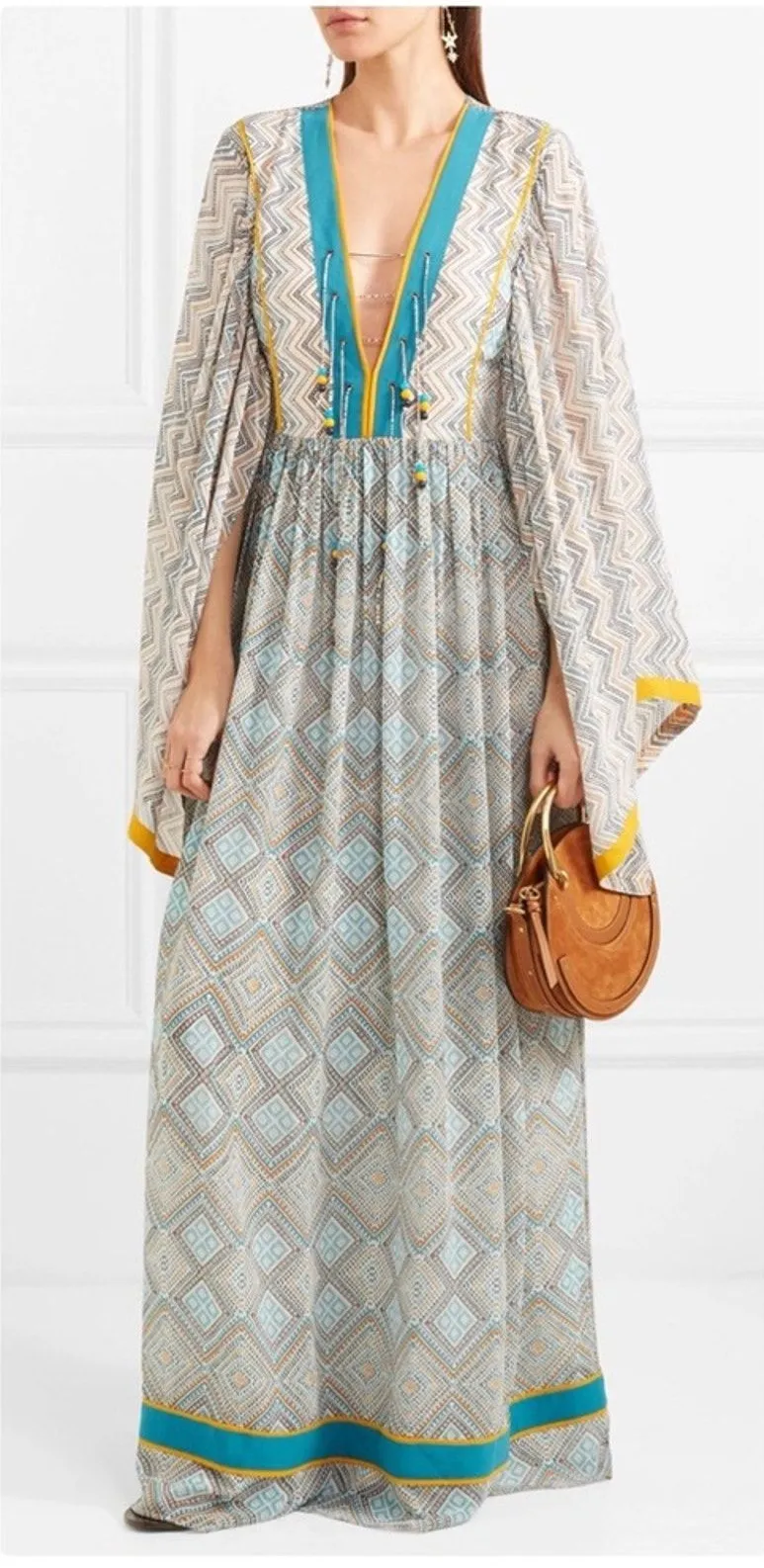 Talitha‎ Women's Maghreb Pinted Silk-Georgette V-Neck Maxi Dress Size S NEW Blue - $352 New With Tags - From Tomi