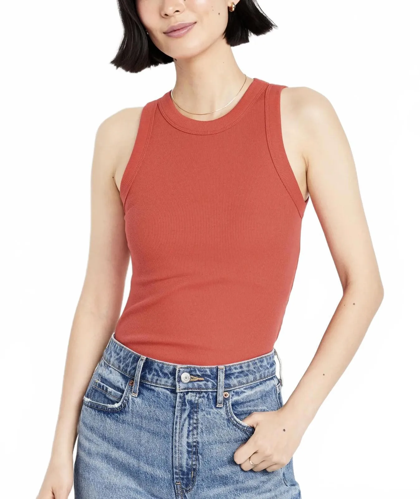 48% cotton 47% polyester 5% spandex A skimming fit that hugs your bod just right. high crew neck sle... Show more