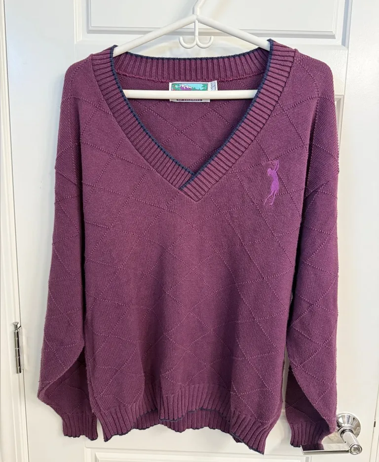 Purple Tall Timber of Colorado Women's Golf V-Neck with Navy Trim at the V. 100% Cotton. Embroidered woman golfing on front, cute. Measurements: Front length: 24" Back length: 27" Pit to pit: 21" Shoulder to shoulder: 19" V-Neck drop: 7" country club sportswear old money gulf course vtg athletic vintage wealth trust fund